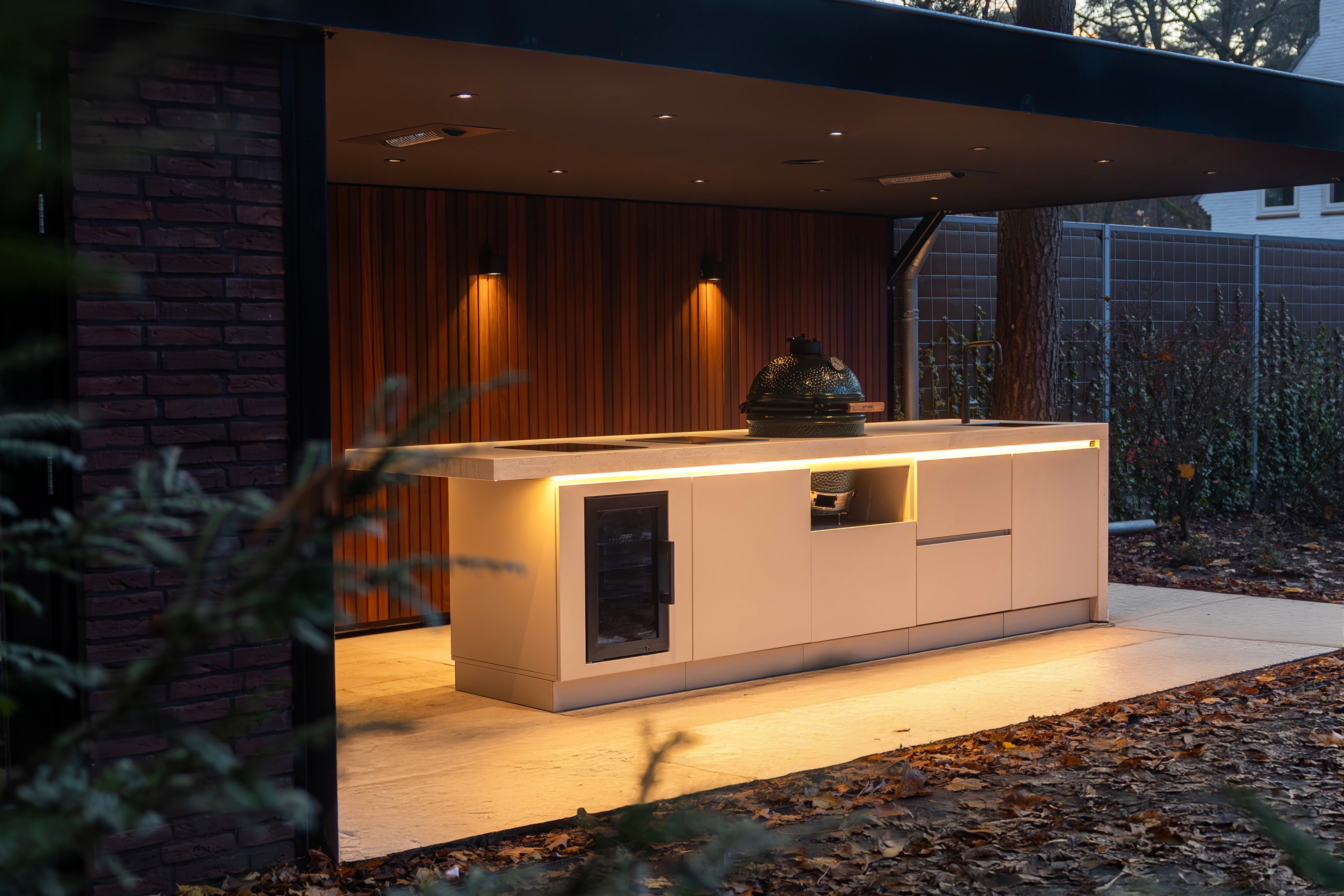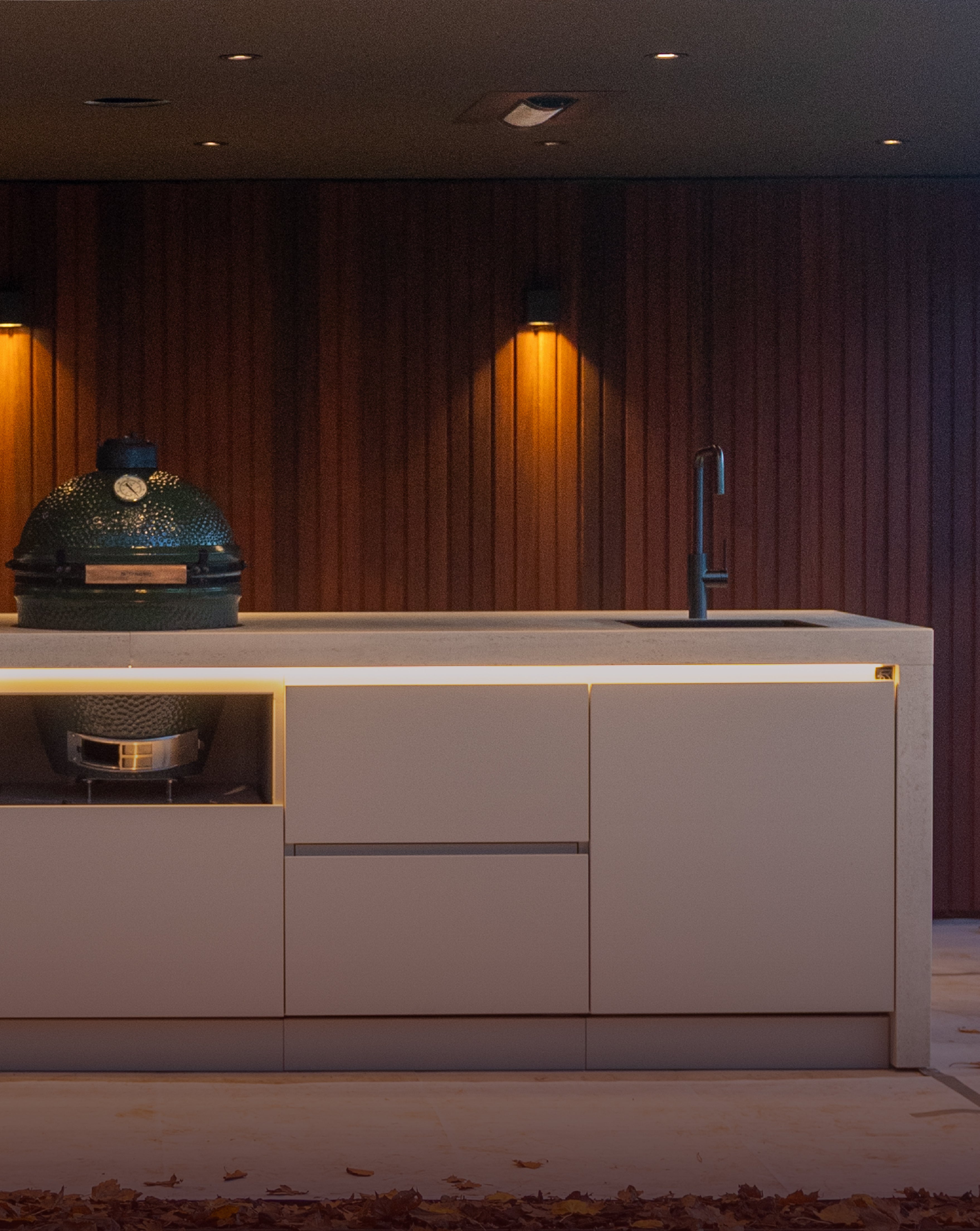 Door hoogwaardige materialen te combineren, garanderen wij dat de buitenkeuken het hele jaar door buiten kan blijven staan, ongeacht de weersomstandigheden.