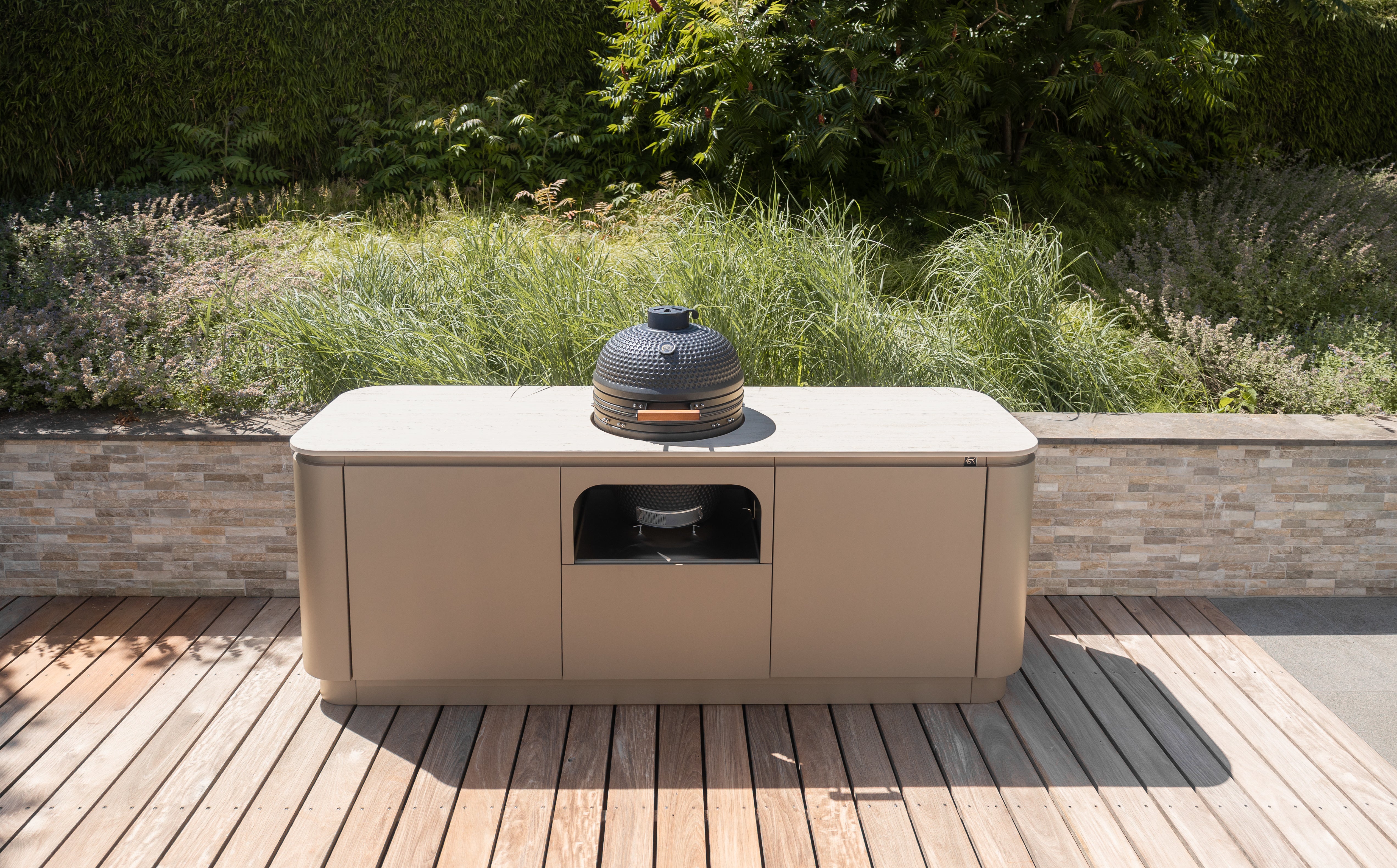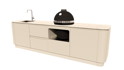 Onze buitenkeukens combineren roestvast en verzinkt staal met een duurzame drielaagse poedercoating.