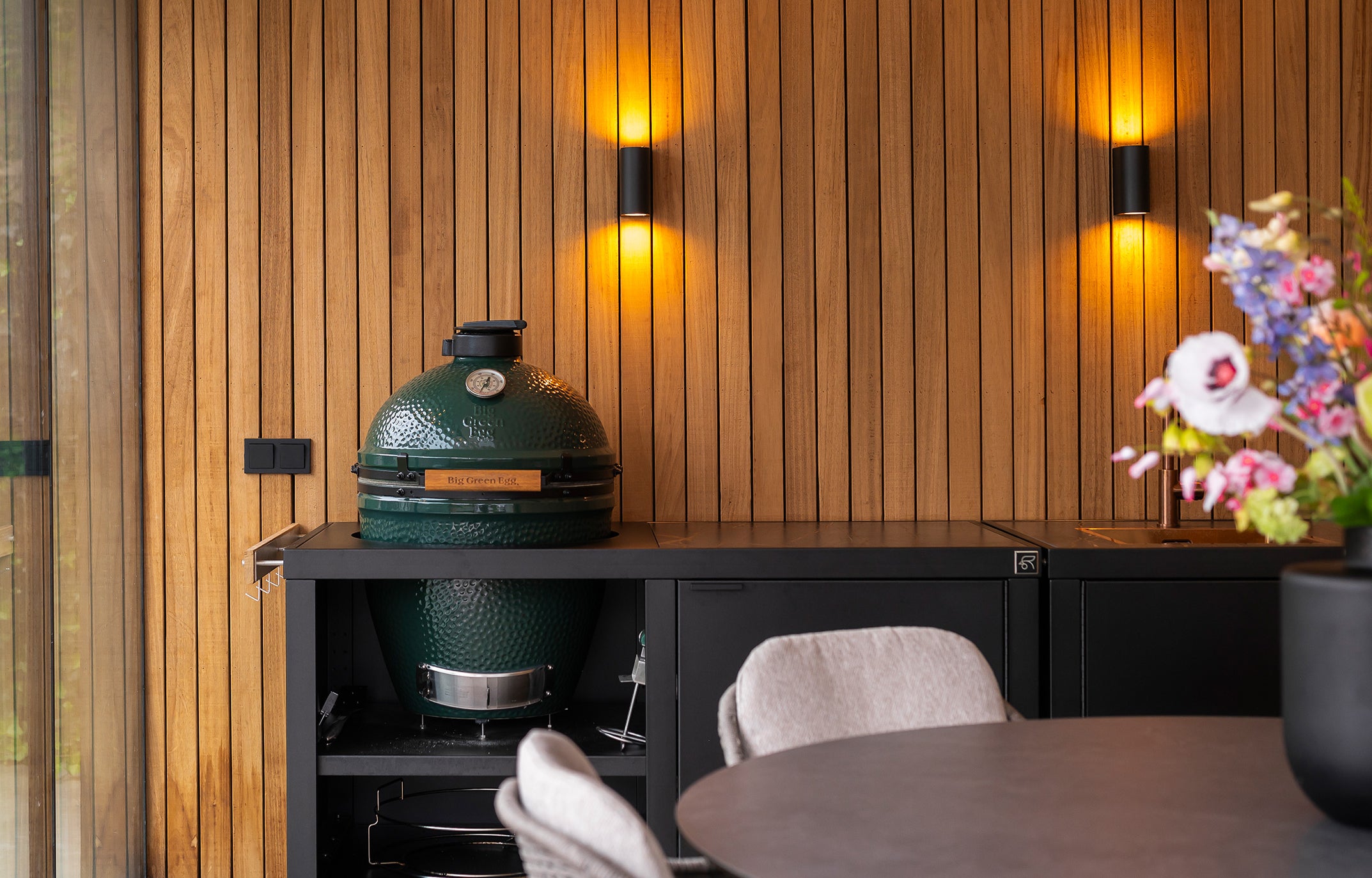 Onze buitenkeukens zijn geschikt voor alle gangbare keramische BBQ’s. Of je nu kookt met een Big Green Egg, The Bastard, Kamado Joe of Monolith – dankzij ons universele systeem sluit alles naadloos aan.